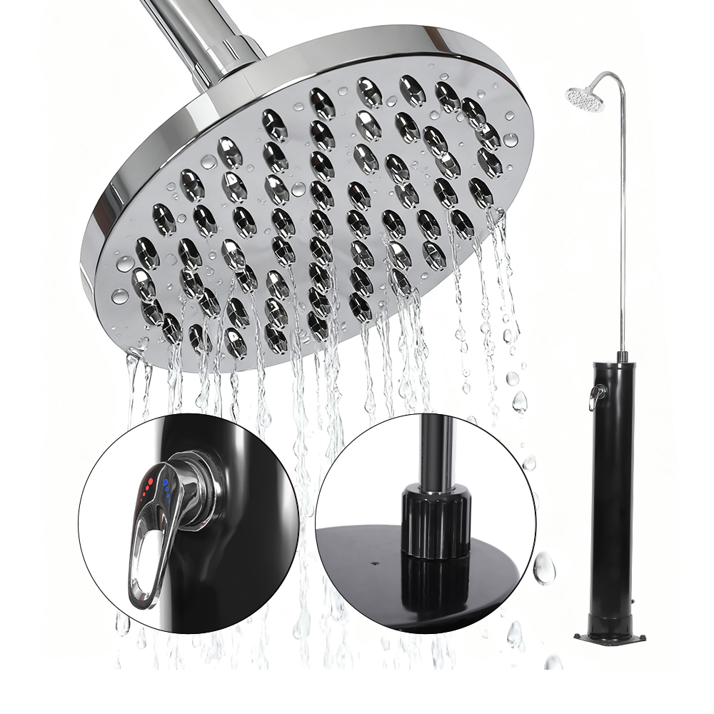 Bei starker Sonneneinstrahlung kann sich das Wasser im 18/20-Liter-Duschrohr auf natürliche Weise auf etwa 60 °C erhitzen, ohne dass Strom erforderlich ist, und bietet so eine bequeme und umweltfreundliche Duschlösung. Befestigen Sie einfach einen normalen Gartenschlauch, um das Duschrohr problemlos zu füllen. Diese aus UV-beständigem Kunststoff gefertigte Solardusche LY18L01-B 18L mit rundem Gehäuse für den Garten, den Swimmingpool und ist auf Langlebigkeit ausgelegt und kann bei Bedarf leicht zerlegt und transportiert werden. Sein massiver Sockel aus Edelstahl, PVC, ABS, Kupfer und Metall sorgt für zuverlässige Stabilität und hält das Gerät auch bei häufigem Gebrauch sicher an Ort und Stelle. Darüber hinaus verfügt es über einen Standard-Gartenschlauchanschluss zum schnellen Befüllen und einen Abflussstopfen, der ein einfaches Entleeren des Duschrohrs ermöglicht und so die Vorbereitung der Dusche für die Winterlagerung vereinfacht.