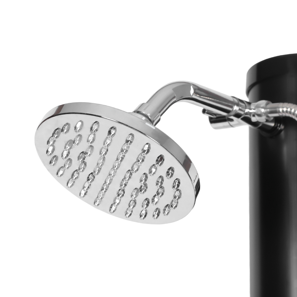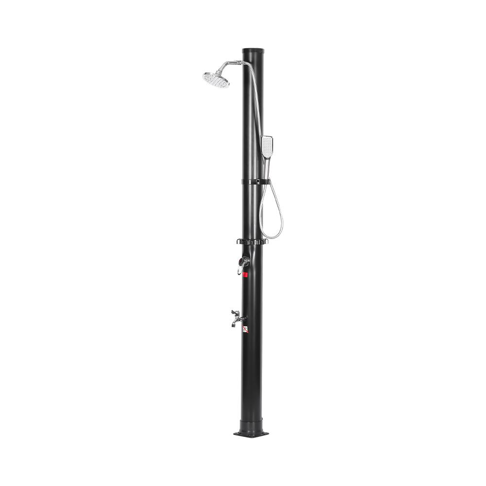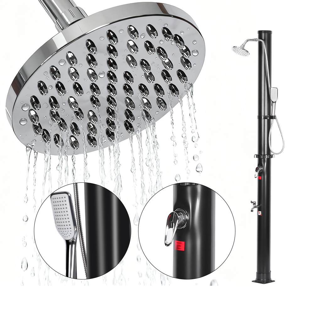 Diese zweiteilige ABS-Solardusche mit Chromkopf LY18L05-HB 18L für den Außenbereich verfügt über einen praktischen Gartenschlauchanschluss zum einfachen Befüllen und einen Abflussstopfen, der ein schnelles Entleeren ermöglicht, wenn das Gerät für die Winterlagerung vorbereitet wird. Sobald das Duschrohr gefüllt ist, erwärmt sich das Wasser auf natürliche Weise mithilfe von Solarenergie, und der integrierte Mischhahn macht es einfach, das Wasser auf Ihre bevorzugte Temperatur einzustellen, um ein angenehmes Duscherlebnis zu ermöglichen. Alle Komponenten sind sicher mit Schrauben befestigt, um die Haltbarkeit zu gewährleisten, und für einen sicheren Betrieb muss die Dusche ordnungsgemäß am Boden verankert sein. Es werden klare, mehrsprachige Anweisungen bereitgestellt, die Sie durch die Installation und Verwendung führen und den Einrichtungsprozess unkompliziert und zuverlässig machen.