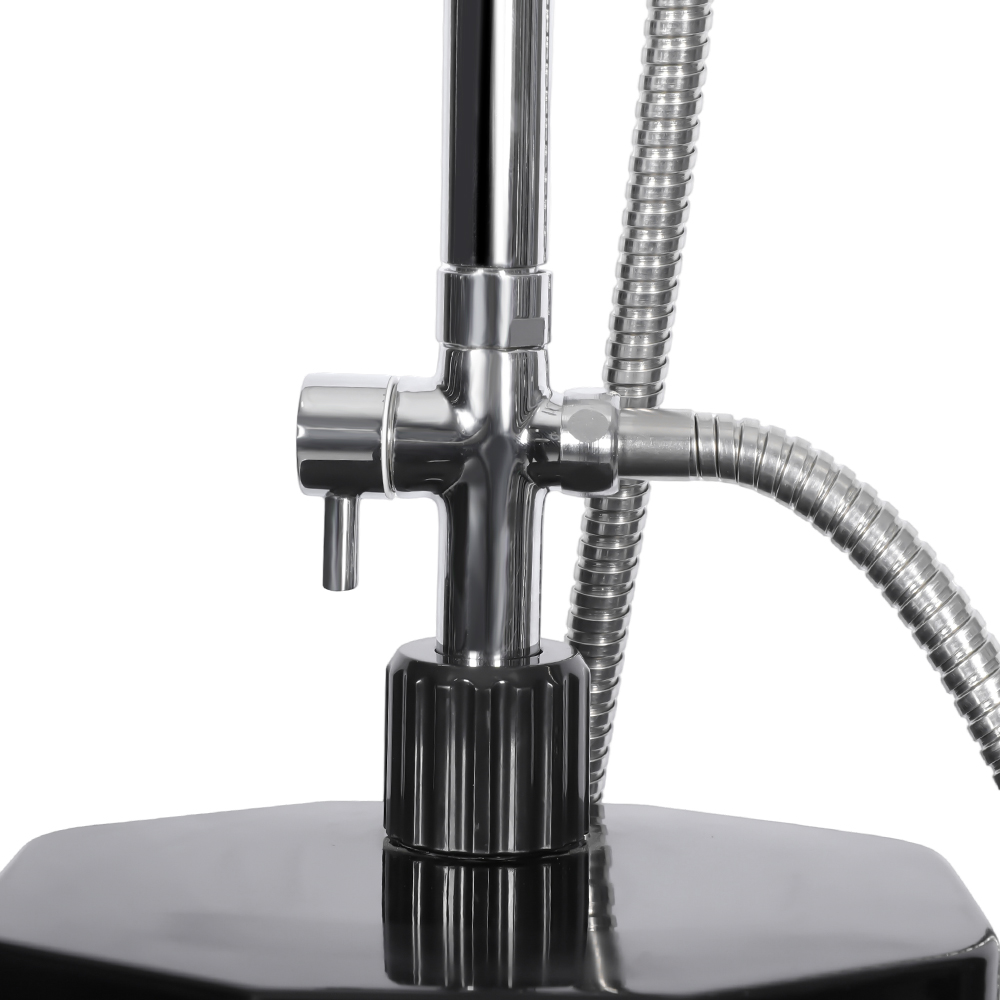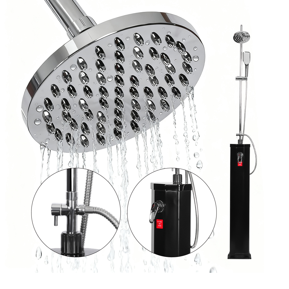 Diese 18-Liter-PVC-Solardusche LY18L09-B am Pool mit mobiler Kopfdusche aus Edelstahl soll Komfort und Entspannung in eine Vielzahl von Außenbereichen bringen, sei es im Garten, am Pool oder auf Campingausflügen, und bietet eine moderne Lösung, um heißes Wasser zu genießen, ohne externe Energiequellen zu benötigen. Es verfügt über einen übergroßen Regenduschkopf mit eingebautem Kugelgelenk, der eine einfache Einstellung von bis zu 180° ermöglicht, Flexibilität bei der Verwendung gewährleistet und die Einrichtung einfach macht. Der flexible Duschkopf im Regenwaldstil verbessert das Erlebnis, indem er es Ihnen ermöglicht, den Wasserfluss einfach zu steuern und so ein wohltuendes, Spa-ähnliches Gefühl zu erzeugen, das dem Stehen unter einem natürlichen Wasserfall ähnelt. Zusammen sorgen diese Funktionen für ein erfrischendes und individuell anpassbares Duscherlebnis und machen es ideal für alle, die sowohl Praktikabilität als auch Entspannung im Freien suchen.