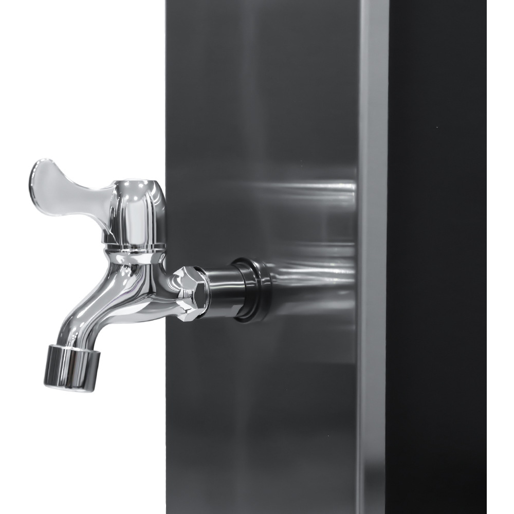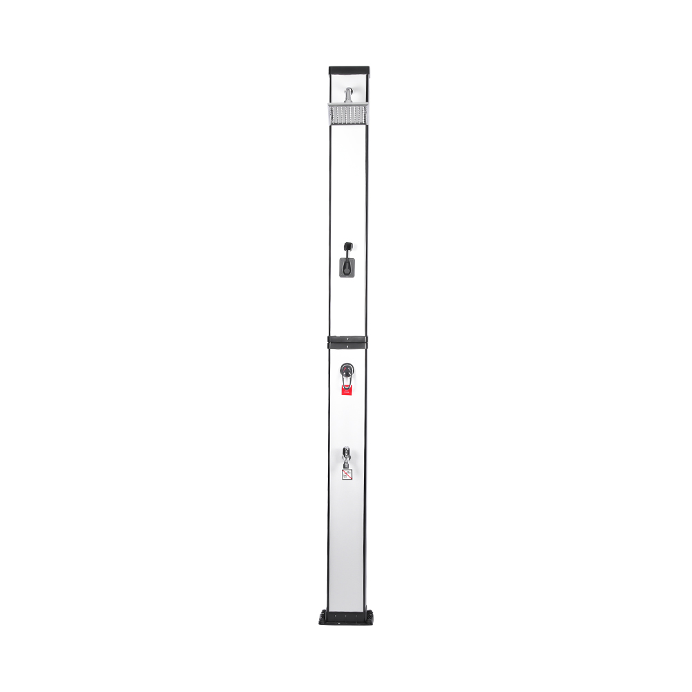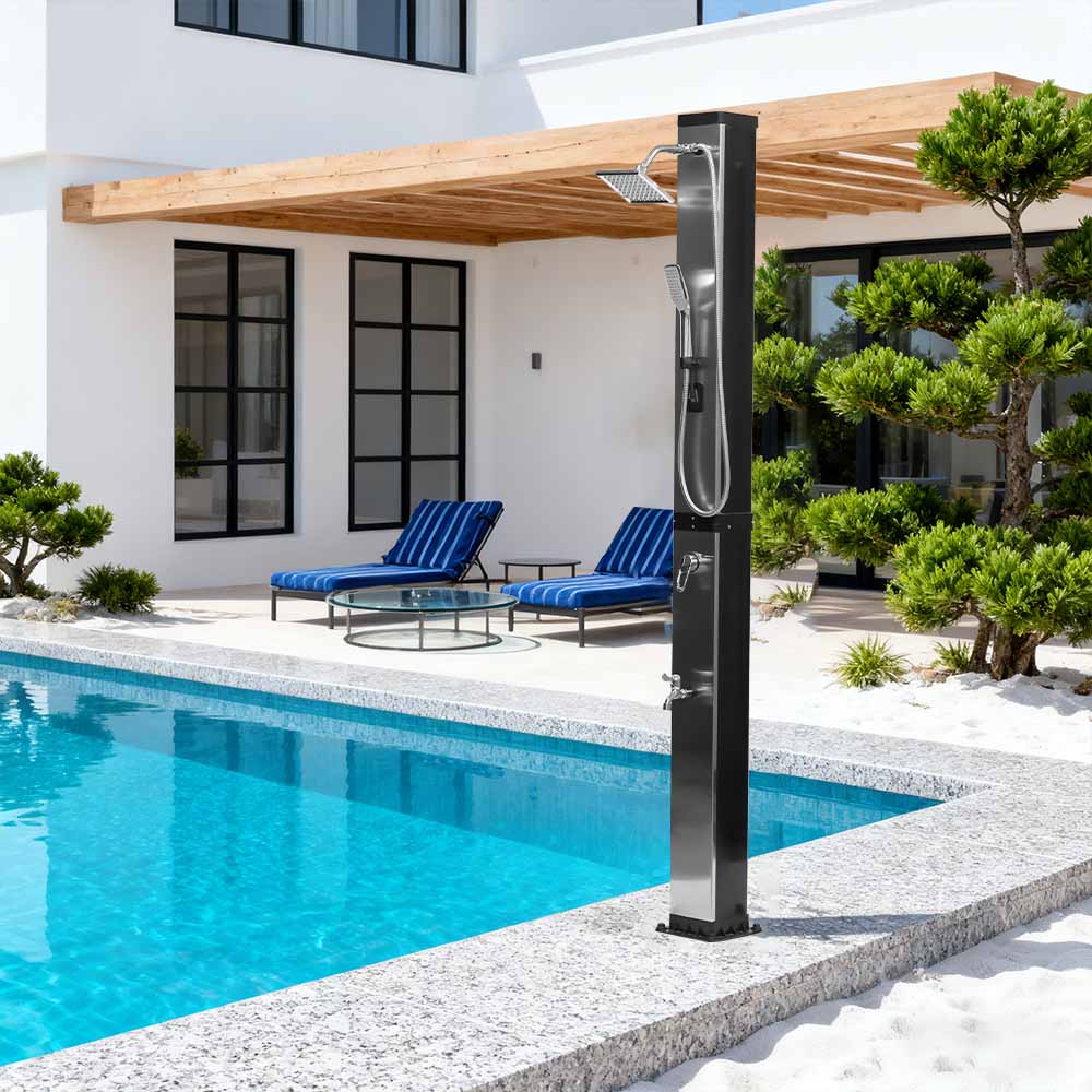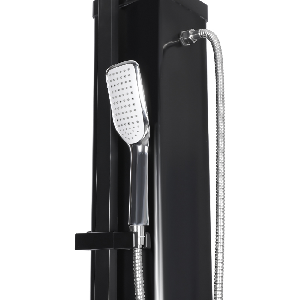 Diese multifunktionale Solardusche LY35L07 mit großer Kapazität nutzt nur Sonnenlicht, um Wasser auf bis zu 60 °C zu erhitzen und bietet so eine energiesparende und umweltfreundliche Möglichkeit, das Baden im Freien zu genießen. Das Befüllen ist einfach —schließen Sie einfach einen Standard-Gartenschlauch an den Einlass und das Duschwasser ist schnell einsatzbereit. Ein eingebautes Metallregal bietet einen praktischen Platz zur Aufbewahrung von Duschgel und anderen wichtigen Dingen, während Abflusslöcher an der Basis dafür sorgen, dass das Wasser effizient abfließt und der Bereich trocken und ordentlich bleibt. Diese Solardusche wurde mit Blick auf Vielseitigkeit entwickelt und eignet sich perfekt für verschiedene Umgebungen, sei es am Strand, am Pool, in einem Ferienhaus, Hotel oder Bungalow. Seine flexible Struktur ermöglicht es ihm, sich an unterschiedliche Umgebungen anzupassen.