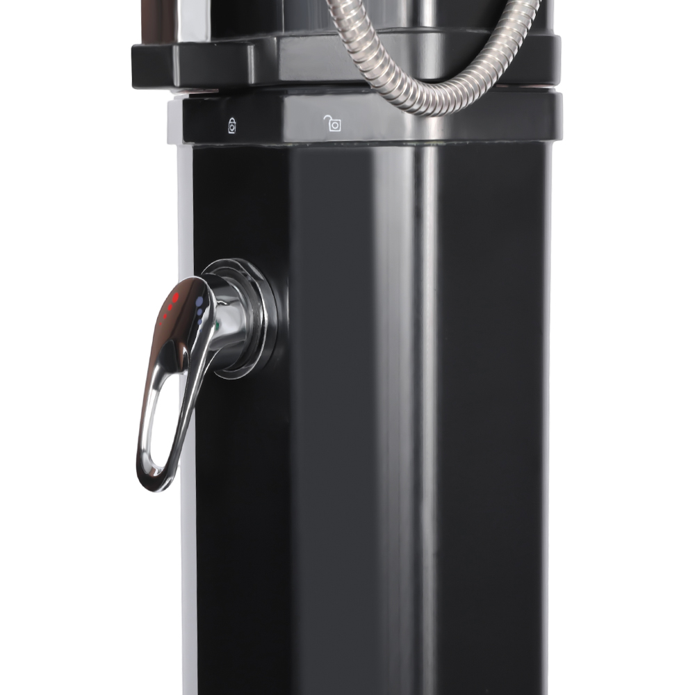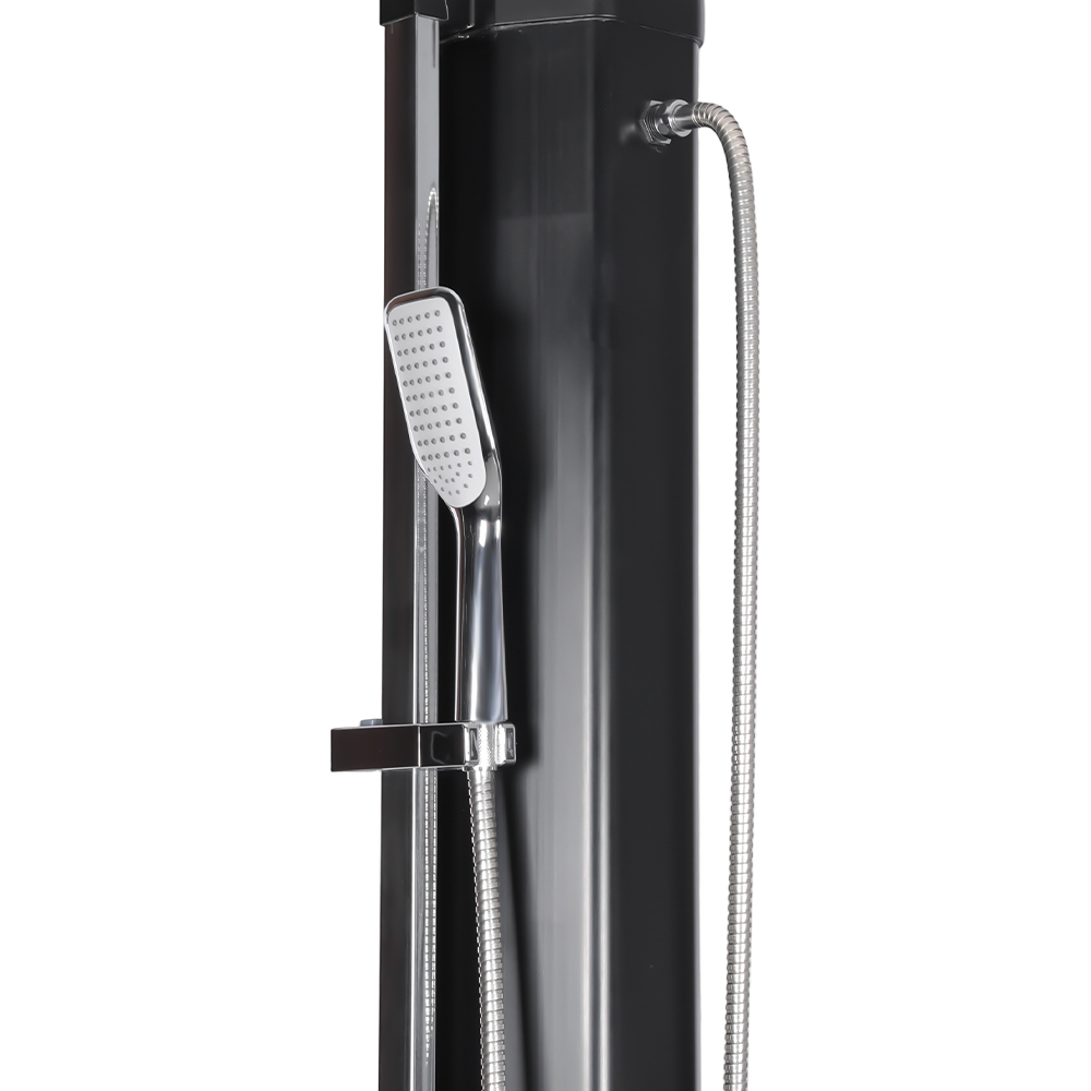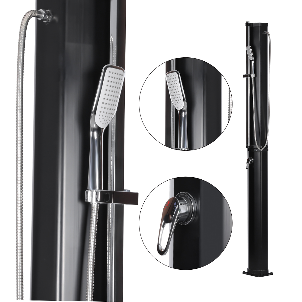 Diese stabile und effiziente Garten-Solardusche mit großer Kapazität LY35L08-HB arbeitet effizient mit Sonnenlicht. Sein großes 35-Liter-Duschrohr erhitzt Wasser bei ausreichender Sonneneinstrahlung auf etwa 60°C. Das Nachfüllen ist einfach, erfordert keinen Strom und kann problemlos durch den Anschluss an einen Standard-Gartenschlauch erfolgen. Sein großer Regenduschkopf sorgt für ein angenehmes Kühlerlebnis und sein integriertes Kugelgelenk ermöglicht eine Schwenkbarkeit von bis zu 180° für verschiedene Winkel. Auch die Installation ist sehr bequem. Die Gesamtstruktur besteht aus langlebigem, UV-beständigem Kunststoff und hält längerer Einwirkung im Freien effektiv stand. Der Duschkopf lässt sich schnell zerlegen und ermöglicht so einen einfachen Transport zwischen Standorten oder die Lagerung außerhalb der Saison. Ein stabiler Metallsockel sorgt nach der Installation für Stabilität und Sicherheit und ermöglicht Ihnen eine komfortable Außendusche in Ihrem Garten, am Pool oder auf dem Campingplatz.