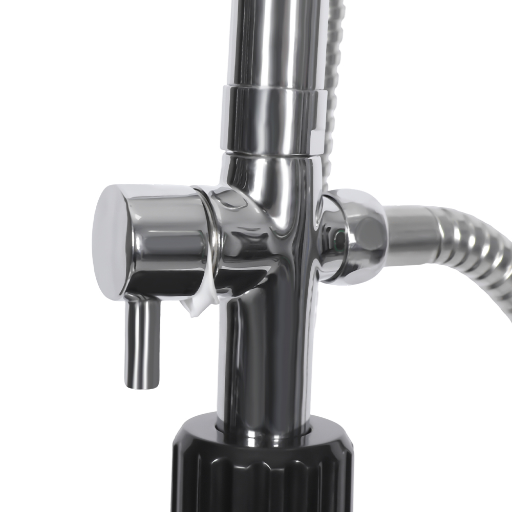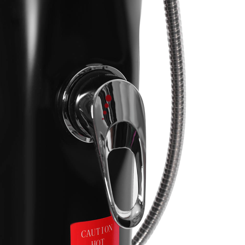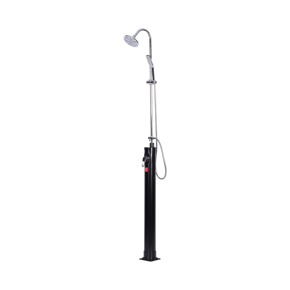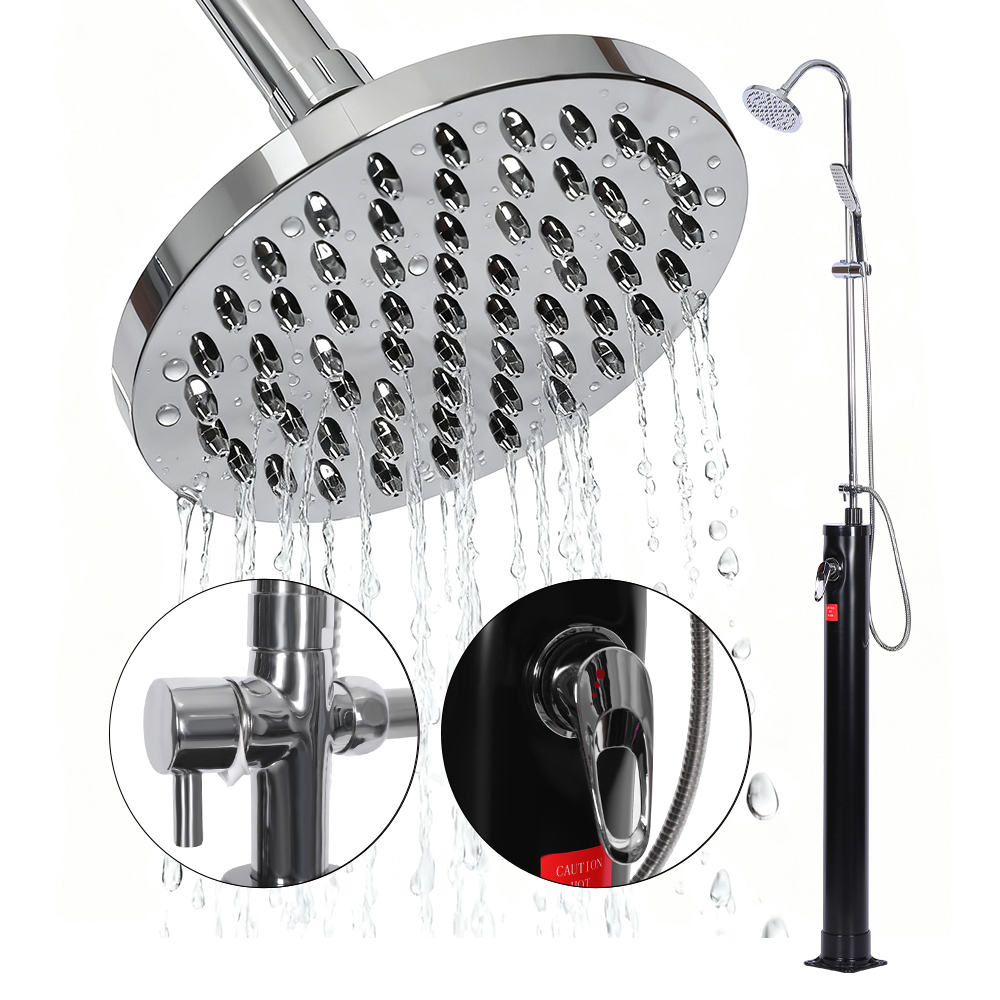 Die Solar-Säulendusche LY08L03 8L für den Gartenpool im Freien verfügt über einen Einhebelmischer, der die Wassertemperatur präzise reguliert, indem er warmes Wasser aus dem Duschwasser mit kaltem Wasser aus einem Gartenschlauch mischt. Es ist mit einem Gartenschlauchanschluss zum bequemen Befüllen und einem Abflussstopfen ausgestattet, der eine vollständige Wasserableitung für eine sichere Winterlagerung ermöglicht. Die Dusche ist aus Stabilitätsgründen auf einem massiven Edelstahlsockel aufgebaut, die Einzelteile sind sicher mit Schrauben befestigt und müssen für eine sichere Verwendung am Boden verankert werden. Bedienungsanleitungen sind enthalten und in mehreren Sprachen verfügbar.